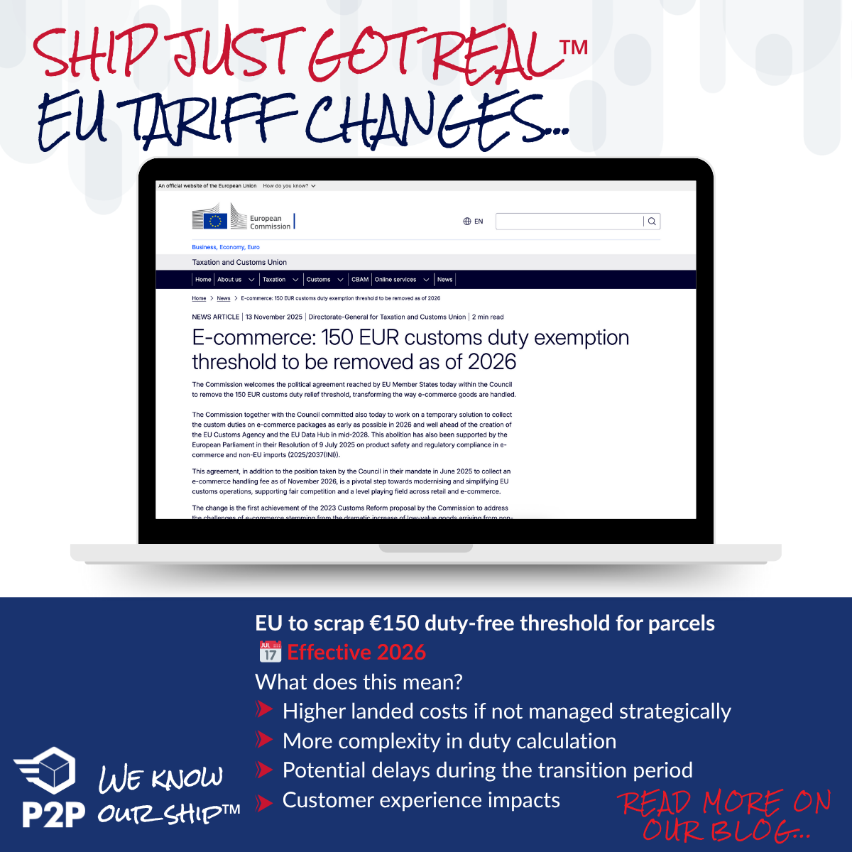 Point2Point Global (P2P) is redefining e-commerce logistics with innovative domestic and cross-border shipping solutions. Our cutting-edge proprietary SETA platform offers Logistics-as-a-Service(LaaS), optimizing pricing, speed and flexibility to simplify even the most complex shipping challenges. From international parcel delivery to domestic multi-modal trucking solutions—including LTL, PTL, and FTL—we provide seamless, scalable logistics that keep your business moving forward.